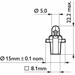 - Kaitinamosios lempos cokolinė konstrukcija: B8.3s/1.5