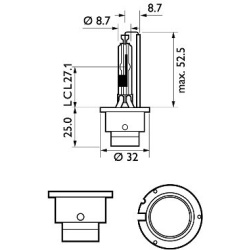 - Kaitinamosios lempos cokolinė konstrukcija: P32d-3
