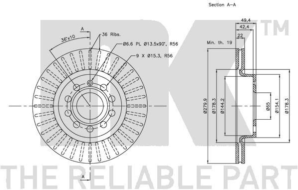 - stabdžių disko storis [mm]