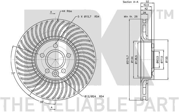 - stabdžių disko storis [mm]